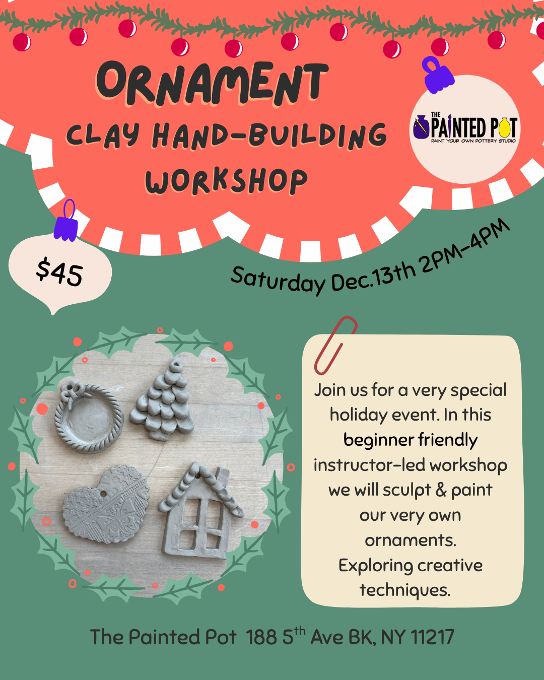 Join us for a family friendly event. Sculpt & Paint unique ornaments, just in time for Christmas!