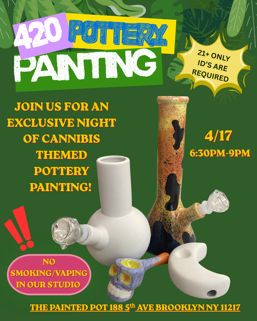 Join us for an exclusive night of cannabis themed pottery painting.
